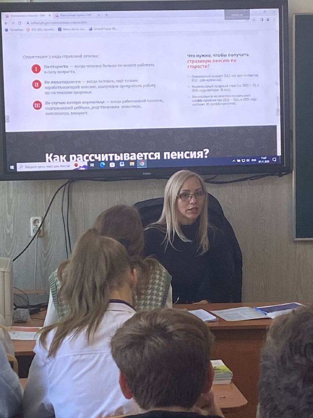 7 ноября 2022г. ученики 10-11 классов приняли участие в занятии, посвященном повышению пенсионной, финансовой и социальной грамотности среди молодёжи. В юности кажется, что молодость, здоровье и силы нас никогда не оставят, а старость не наступит вовсе. Но это не так! Каждый из нас в свой срок достигнет пенсионного возраста. Сегодня, в 21-м веке, молодые люди имеют возможность самостоятельно формировать будущую пенсию и влиять на её размер.